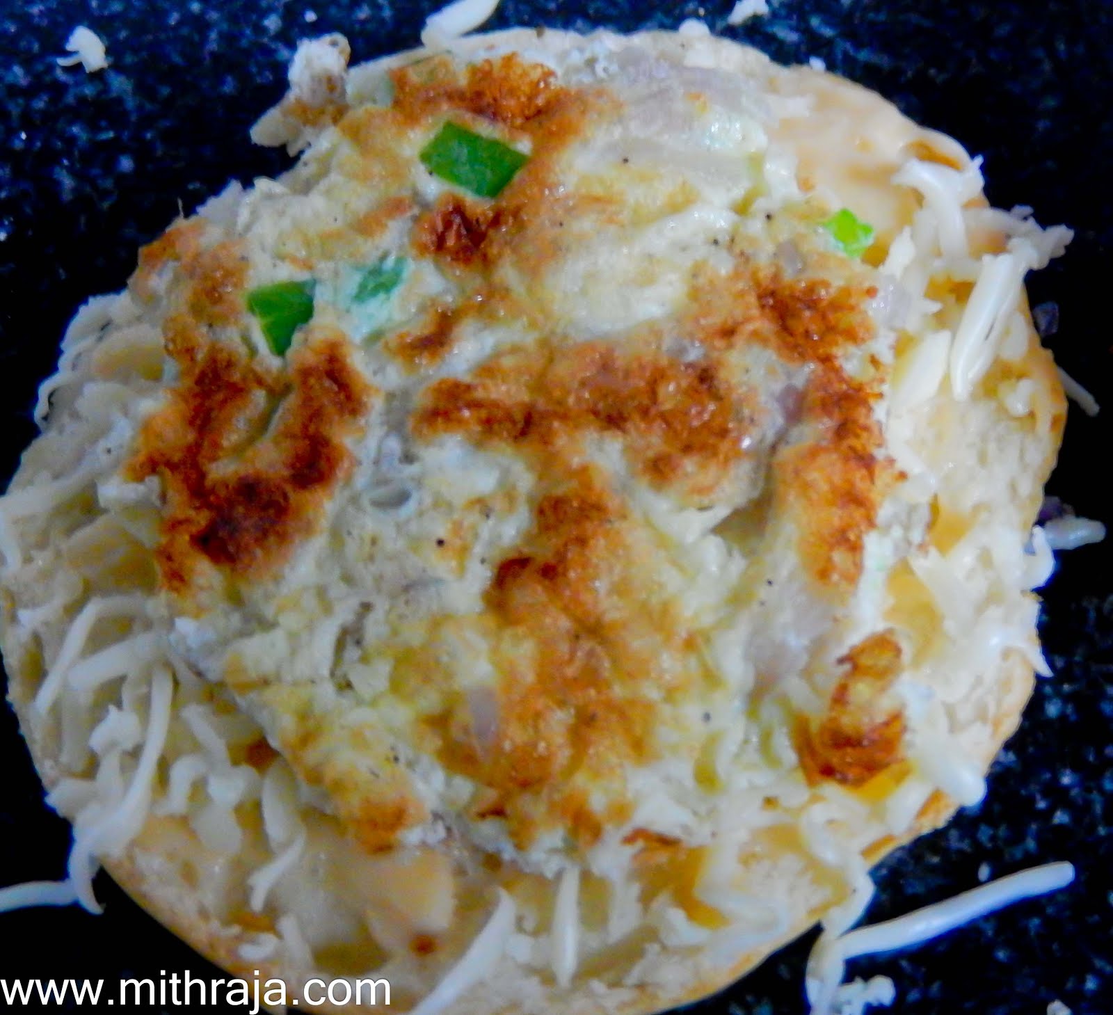 Bake it 5 minutes. Ya... Tasty delicious Egg pizza burger is ready to serve hot.